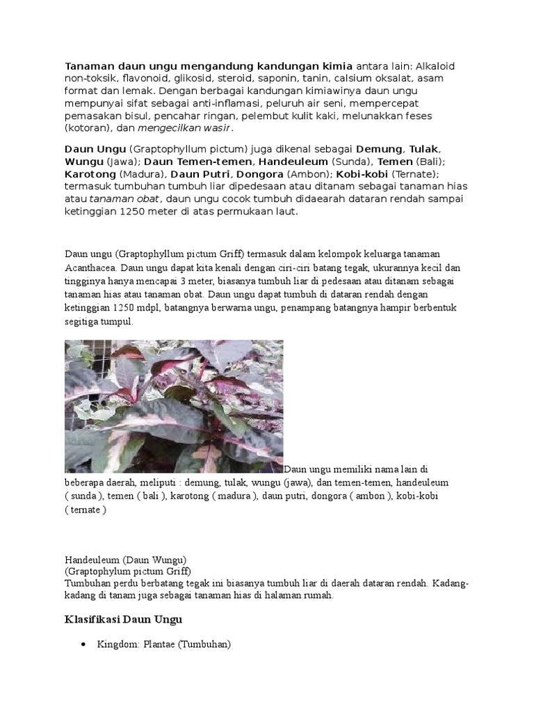 Daun Ungu Deskripsi Klasifikasi Kandungan Dan Manfaat