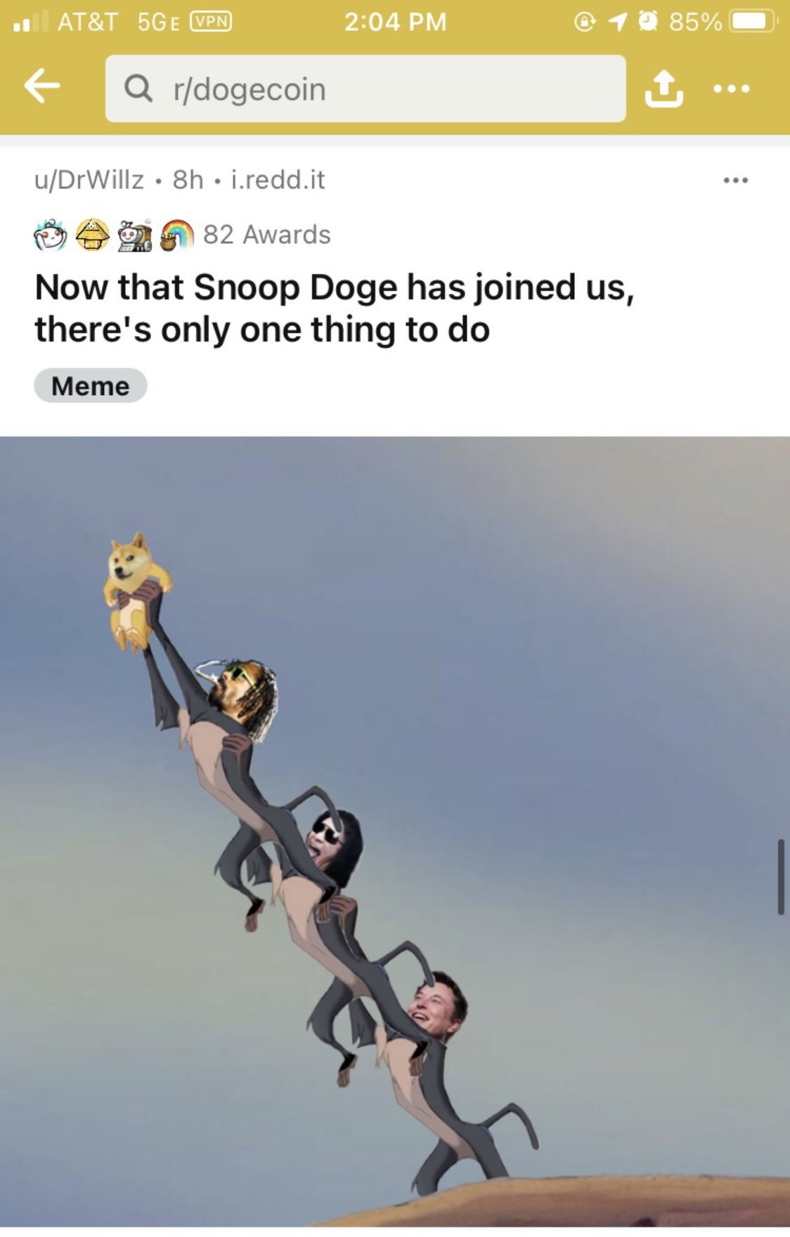 Snoop dogg has joined tesla ceo elon musk and kiss bassist gene simmons in pumping the price of dogecoin. Elon musk posted a meme from the movie the lion king showing himself holding up.
