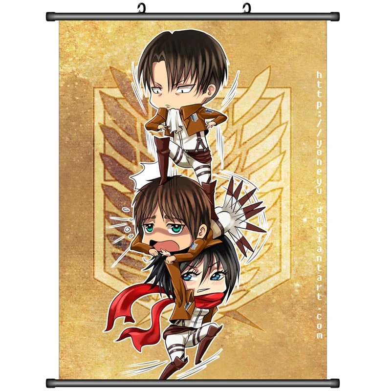 Anime Attack On Titan Shingeki No Kyojin Eren Jaeger Levi Ackerman Mikasa Rumah Dekorasi Dinding Scroll Poster Dekoratif Gambar Painting Calligraphy Aliexpress