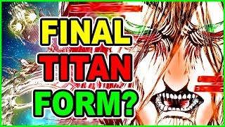 Eren jaeger titan final form. The legend of the first titan ymir fritz details how the titans founder lived for a mere 13 years and thereafter no titan could surpass that limit. Eren has overcome life changing obstacles such as transforming into a. According to erens father grisha jaeger humans who eat intelligent titans to gain their powers will have their lifespan shortened due to the strain of titan powers on the body.