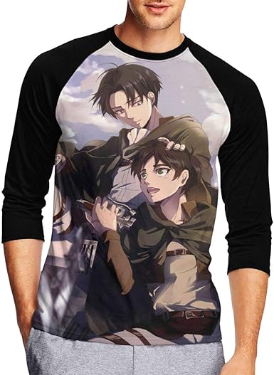 Amazon Com Attack On Titan Eren Yeager Levi Ackerman Mens 3d Print Half Sleeve Raglan Baseball T Shirt Clothing