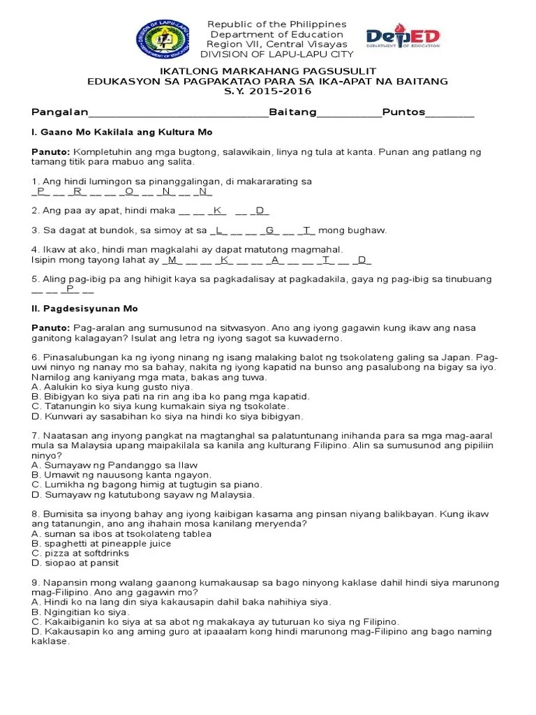 2nd Quarter Summative Tests All Subjects All Grade Levels Deped Click