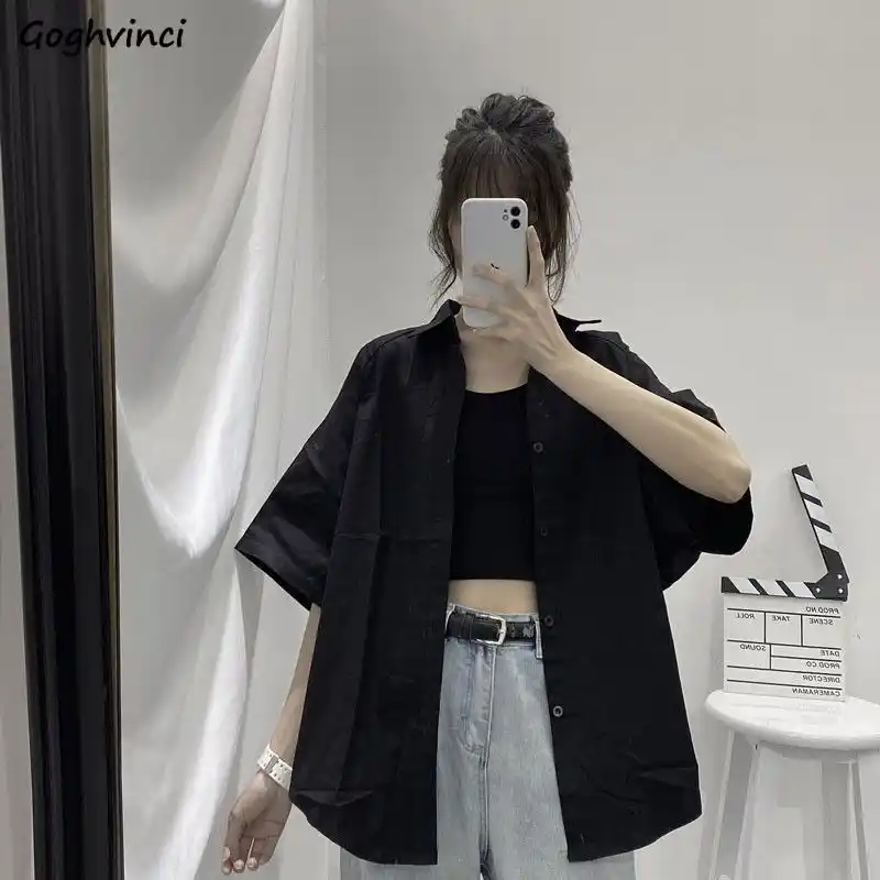 Blus Kemeja Lengan Tiga Perempat Wanita Musim Panas Solid Rompi Korea Fashion Style Hitam Atasan All Match Ins Retro Wanita Fashion Siswa Blus Dan Kemeja Aliexpress