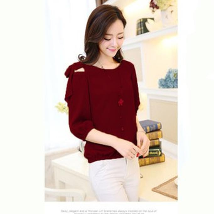 Trandy Korean Style Blouse Wanita Fashion Korea Tangan 3 4 Korean Style Hitam Shopee Indonesia