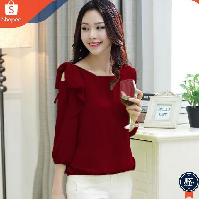 Okechuku Alexa Blouse Wanita Fashion Korea Tangan 3 4 Korean Style Hitam Shopee Indonesia