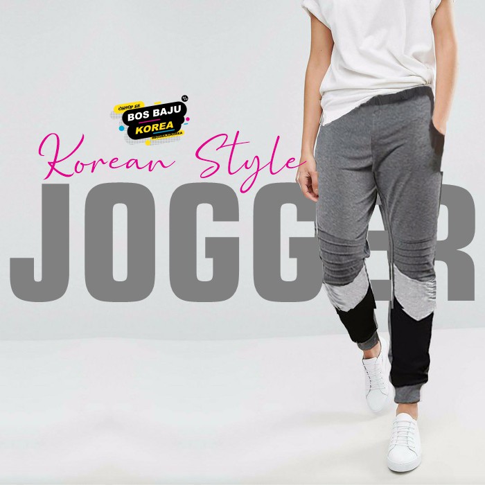 Bos Fashion Korea Celana Jogger Korean Style Joger Cewek Gaya Korea Hitam Abu List Putih Shopee Indonesia