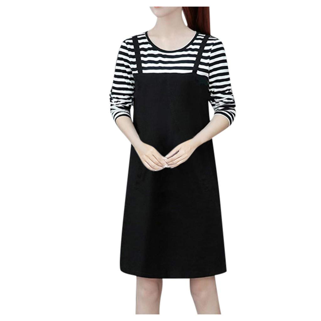 Buy Callm Women S Fashion Korean Dress O Neck Splice Two Pieces Long Sleeve Dress At Amazon In