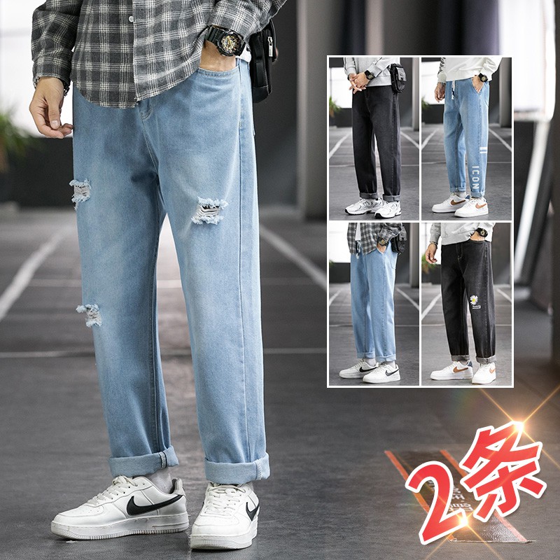Celana Panjang Jeans Pria Casual Model Straight Longgar Lebar Untuk Musim Semi Gugur 2020 Shopee Indonesia