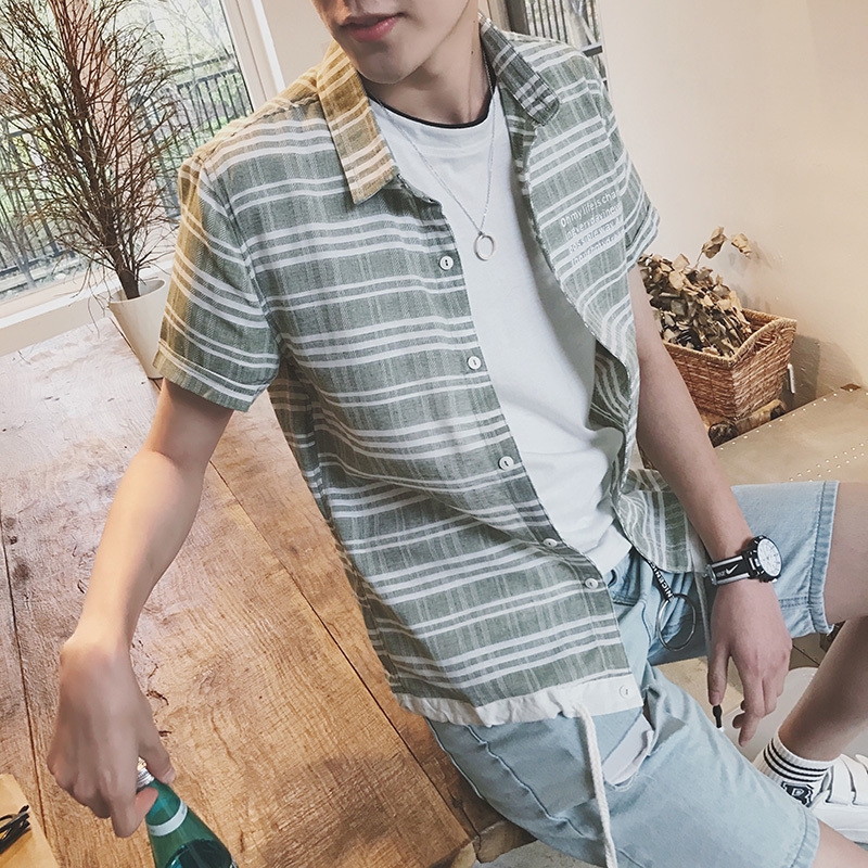 Kemeja Casual Fashion Pria Lengan Panjang Model Jepang Motif Garis Shopee Indonesia