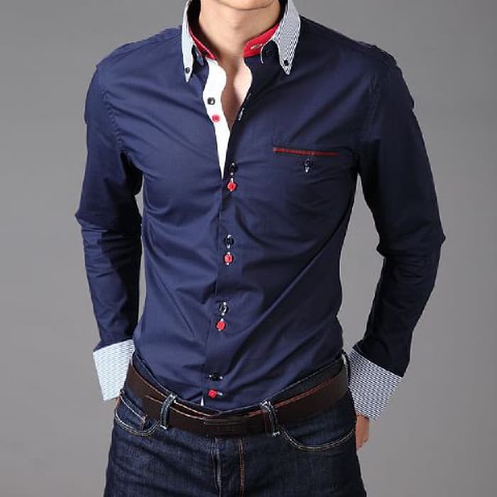Jual Gudang Fashion Lng 1658 Mens Stylish Slim Casual Kemeja Pria Navy Online Januari 2021 Blibli