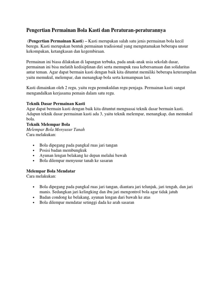 Bola Kasti Pengertian Sejarah Teknik Sarana Cara