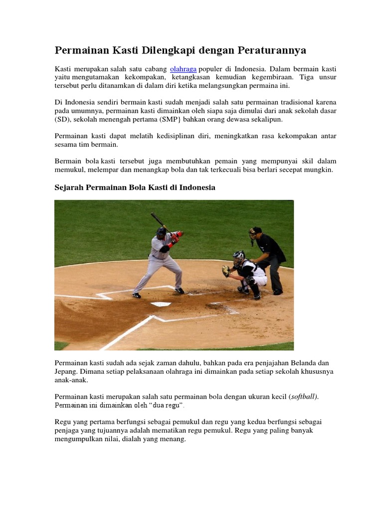 Permainan Kasti Dilengkapi Dengan Peraturannya